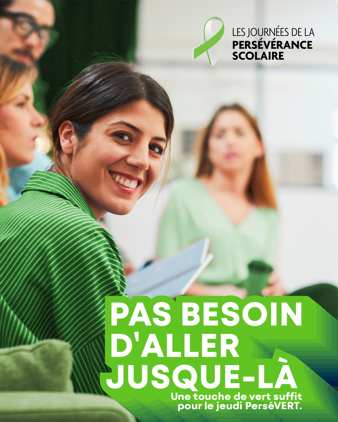 Le jeudi PerséVERT est l’occasion de démontrer notre fierté et nos encouragements envers les jeunes et les adultes en formation. Mais vous n’avez pas à teindre vos cheveux en vert pour y participer!
